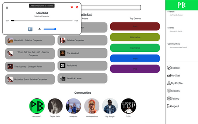Directed the development of a music player and social media hybrid web application called PlayBoy. PlayBoy enables users to stream music, share playlists, participate in community discussions, discover new tracks through a unique swipe-style interface, view their listening statistics at any time, and connect their tunes saved across multiple music platforms like Spotify and Apple Music under one music hub. Role as project manager comprised of leading a team of five members using agile methodologies, coordinating sprints via Scrum board, managing the roadmap, prototyping in Figma, overseeing Git repository management, enforcing coding and design standards, creating agendas, hosting regular meetings and progress reviews, and resolving team conflicts to sustain project momentum and positive team dynamics. Experience gained as a project manager sought on ensuring alignment with the product vision in order to deliver a fully scoped and polished final product.